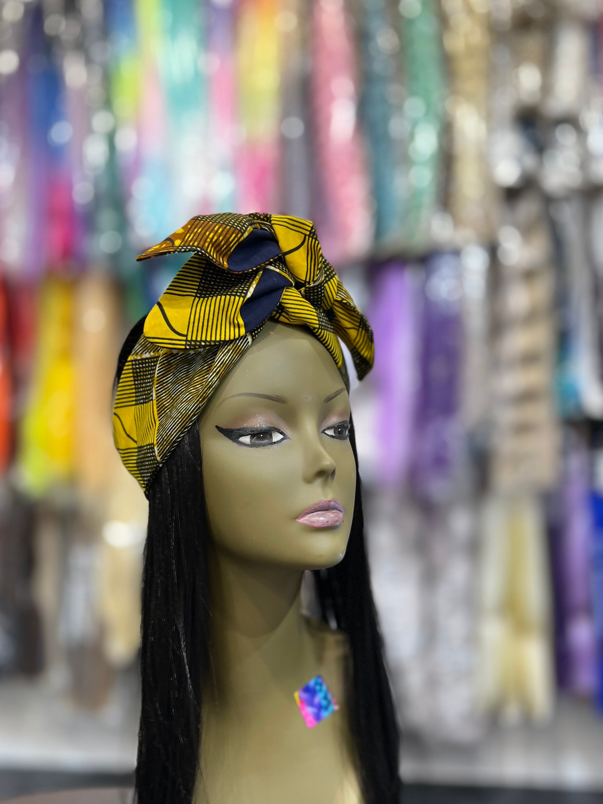 135【アフリカ布のヘアバンド】 ワイヤー&ムスビ ・ リバーシブル
